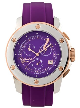 Amazing MULCO watch, great new design with purple silicon band, Stainless steel case, purple dial with triple analog spheres. Water resistant 100 Meters (330 feet). Silver and Gold bezel.Since its Creation in 1958 by Mr. Muller (Muller and Co.), Mulco quickly became a prestigious brand that stood head to head with other competitive Swiss watches. With its suggestive designs and impeccable quality, this exclusive brand superseded the expectations of the demanding European, American and South American markets.Mulco maintained its place in the market until it was bought by one of its competitors in 1973, and for three decades the brand remained a sleeping giant only to be reawakened in 2006 by group visionary entrepreneurs. Never forgotten by its followers for its impressive lines and distinguish quality, Mulco stood the test of time, mesmerizing customers once more with the brand's new look. Mulco Watches Inc. gathered a dynamic group of designers and watch manufactories creating a fashionable yet unique collection of bold new models with playful vibrant colors, original textures and solid materials. Most importantly, the new Mulco inherited the classic seal of quality that people have come to expect from the brand. Mulco is now committed to continue this legacy by constantly updating models and improving the brand; altogether creating the best piece of time you can wear. And forever designing time.